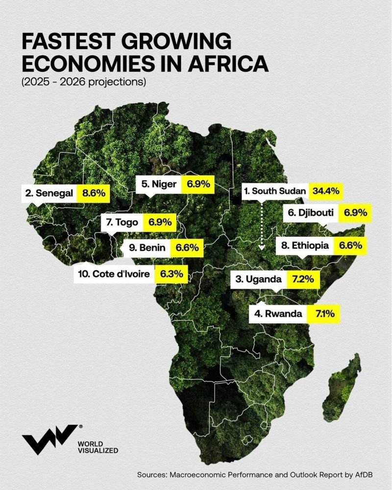 ๐ฅ Senegal ๐ธ๐ณ +8.6% fueled by the start of Oil & Gas production, significant infrastructure development, and continued strength in sectors like agriculture