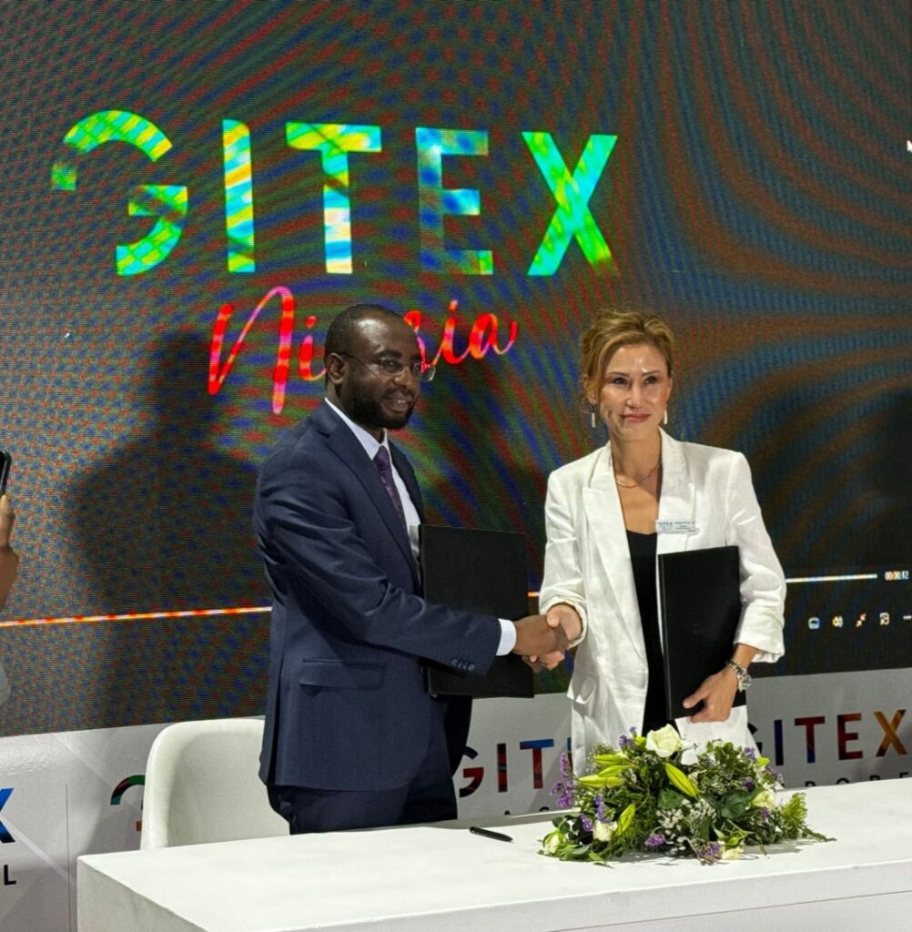 The MoU was signed by Mr. Kashifu Inuwa Abdullahi, CCIE (Director General of Nigeria’s National Information Technology Development Agency – NITDA) and Ms. Trixie LohMirmand (CEO of KAOUN International – organiser of GITEX globally), in the presence of Dr. Tunji Alausa (Hon. Minister of State for Health & Social Reform, Nigeria).