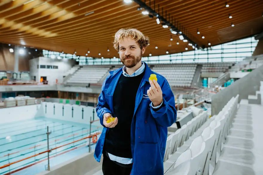Marius Hamelot: In our first year, just after graduation, ESS 2024 contacted us to put us in touch with ELAN and Bouygues. They asked if our small handmade panels could be used for the seating of the future Olympic swimming pool. This was the start of a four-year journey involving extensive prototyping to turn the idea into a product. We worked with Master Industrie, a French company specialising in sports equipment and stands, to develop the seating solution.