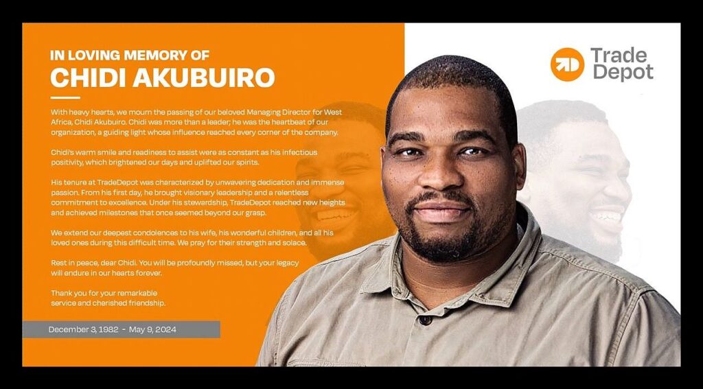 A post by Onyekachi Izukanne (Co-Founder, Trade Depot), in memory of Chidi Akubuiro (Managing Director of Operations at Trade Depot):