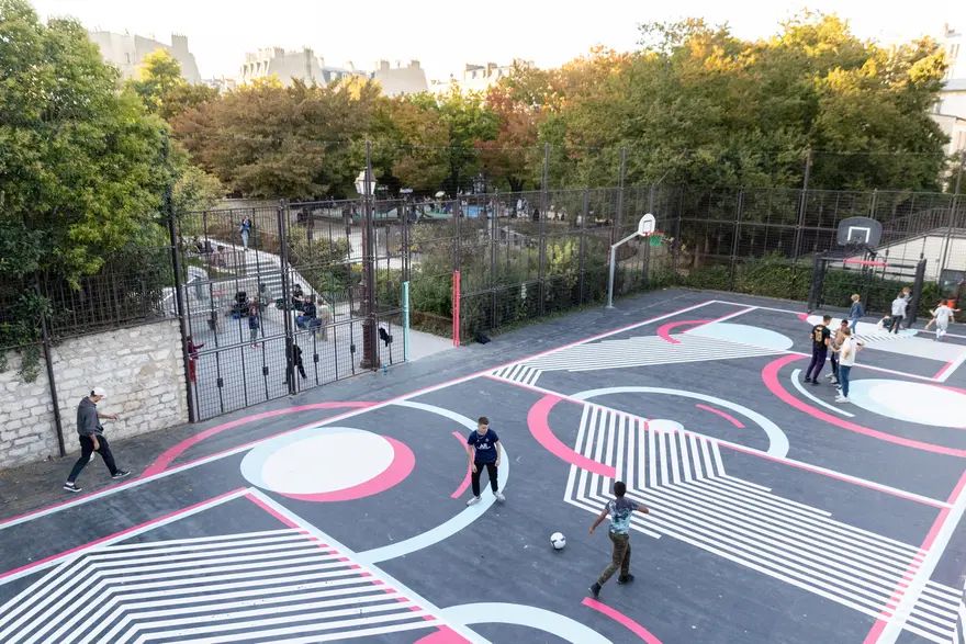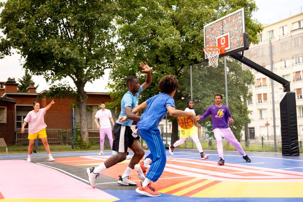 If these courts can act as agents of community cohesion, it’s because the entire development process – from planning to execution and beyond – is a collaborative effort with local residents, neighbourhood associations and regular users. Rym Chaouche, one of Eole’s (a basketball court in the 18th arrondissement) iconic basketball players, highlights their contribution to the renovation: “We were very much involved in the renovation of the court. For example, workshops were organised beforehand“.