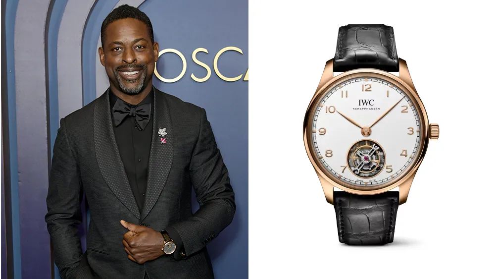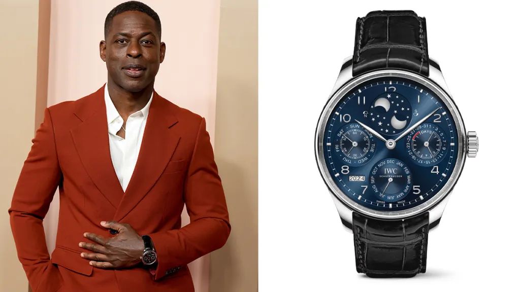 Never mind that the stunning IWC Portugieser will set you back $66,500. Yet American Fiction star, Sterling K. Brown, wore two different ones within a space of weeks – first, a hand-wound tourbillion on January 09, 2024, to the Governors Awards (an annual award ceremony hosted by the Academy of Motion Picture Arts and Sciences), and then a perpetual calendar to the Oscars Nominee lunch on February 12, 2024.