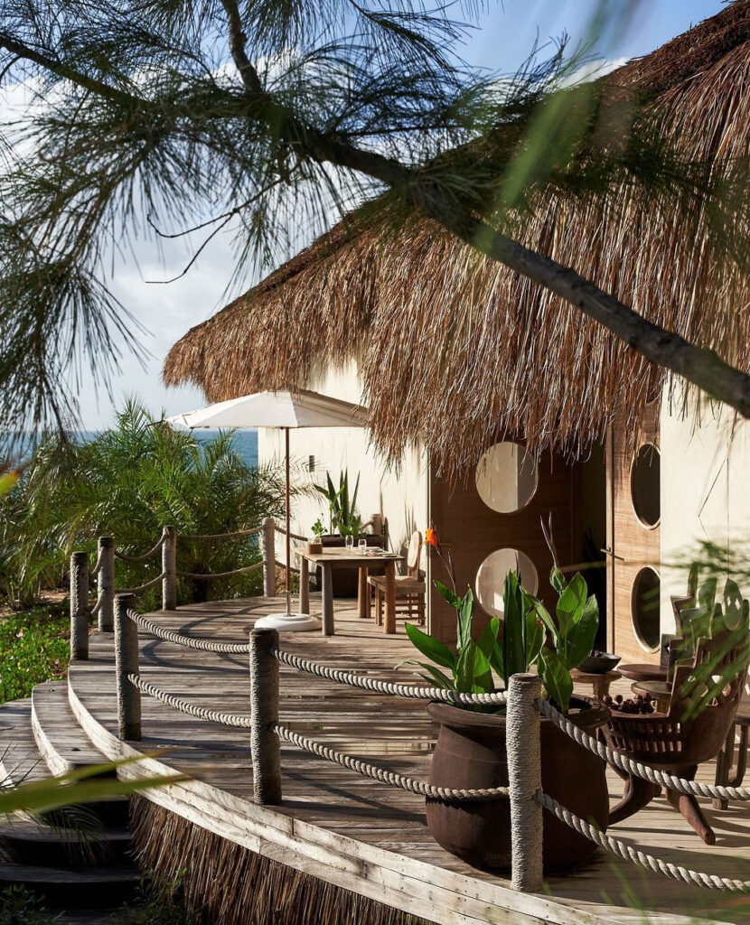 Kisawa’s Natural Wellness Centre (NWC) comprises a standalone spa and gym. Its design is inspired by the island’s traditional circular village houses and community buildings. The exterior was hand thatched on site, led by Cristiano Pedro Machel, head of all Kisawa thatching teams.