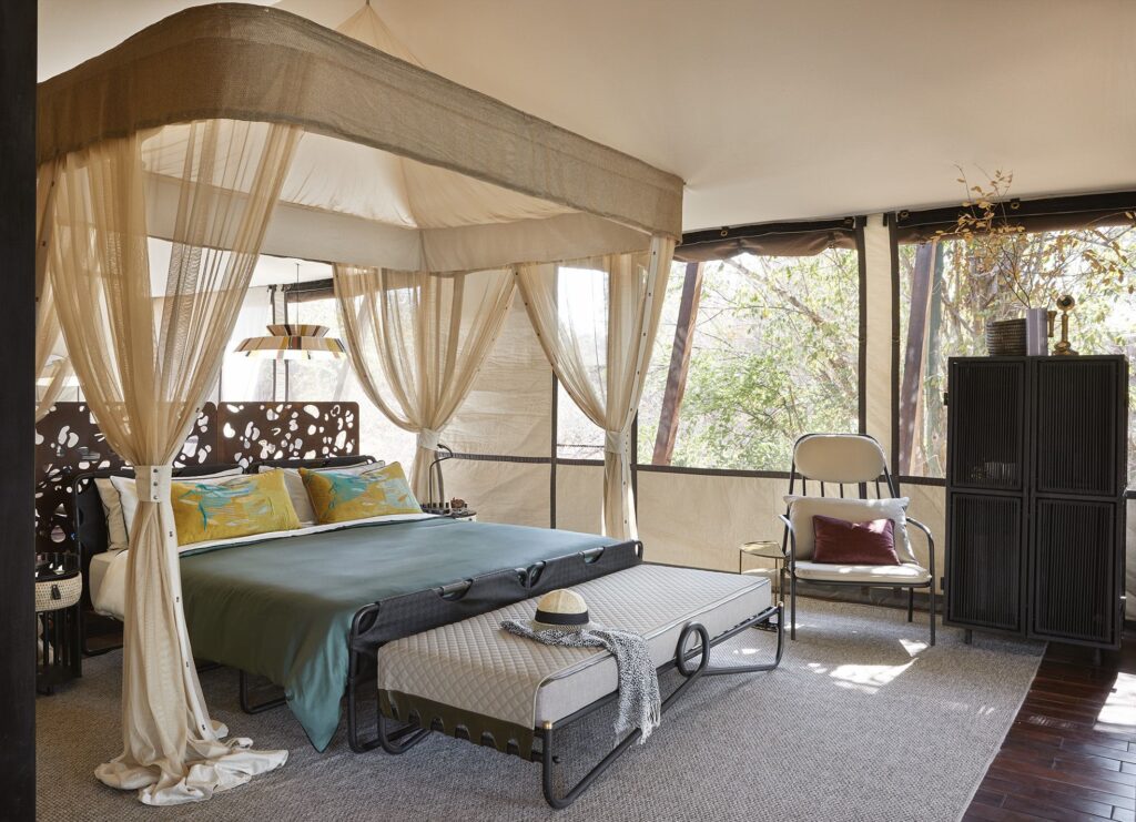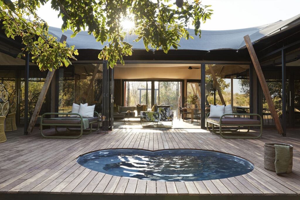 Two villa-style tented suites comfortably accommodate up to four adults and include a private pool.