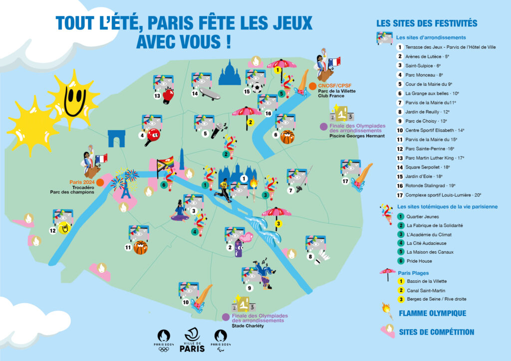 After two and a half months of traveling across France, the Olympic Flame made its grand return to Paris on July 26 for the opening ceremony of the Olympic Games. To fully experience the beginning of the Olympic festivities, the City of Paris is opening 26 festivity sites throughout the city (in each Parisian arrondissement, except for the 7th), providing for Parisians and visitors a unique opportunity to fully enjoy this exceptional evening and watch the opening ceremony live!