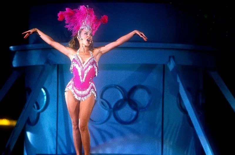 - At Sydney 2000, Australian popstar Kylie Minogue brought the curtain down on the first Games of the new millennium with a rendition of ABBA’s ‘Dancing Queen’ clad in a bright pink showgirl costume, complete with feathers.