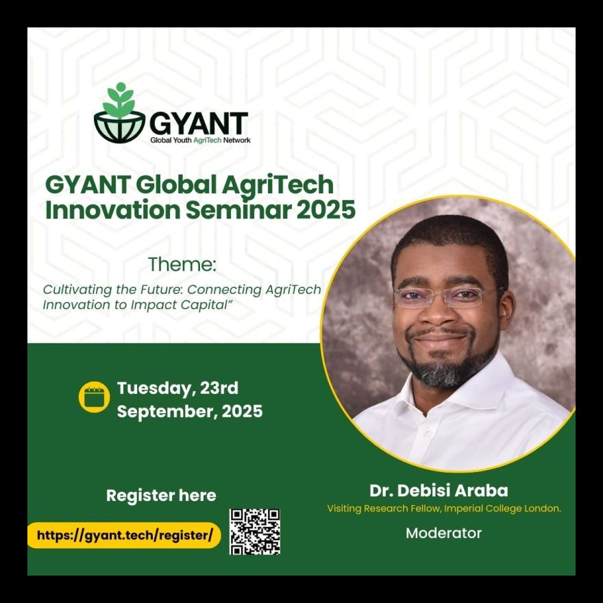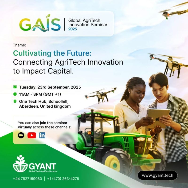 The Global Youth AgriTech Network (GYANT) invites you to join them physically in Aberdeen (Scotland) or virtually, and be part of a transformative conversation on Connecting AgriTech Innovation to Impact Capital. 🌱🚜✨