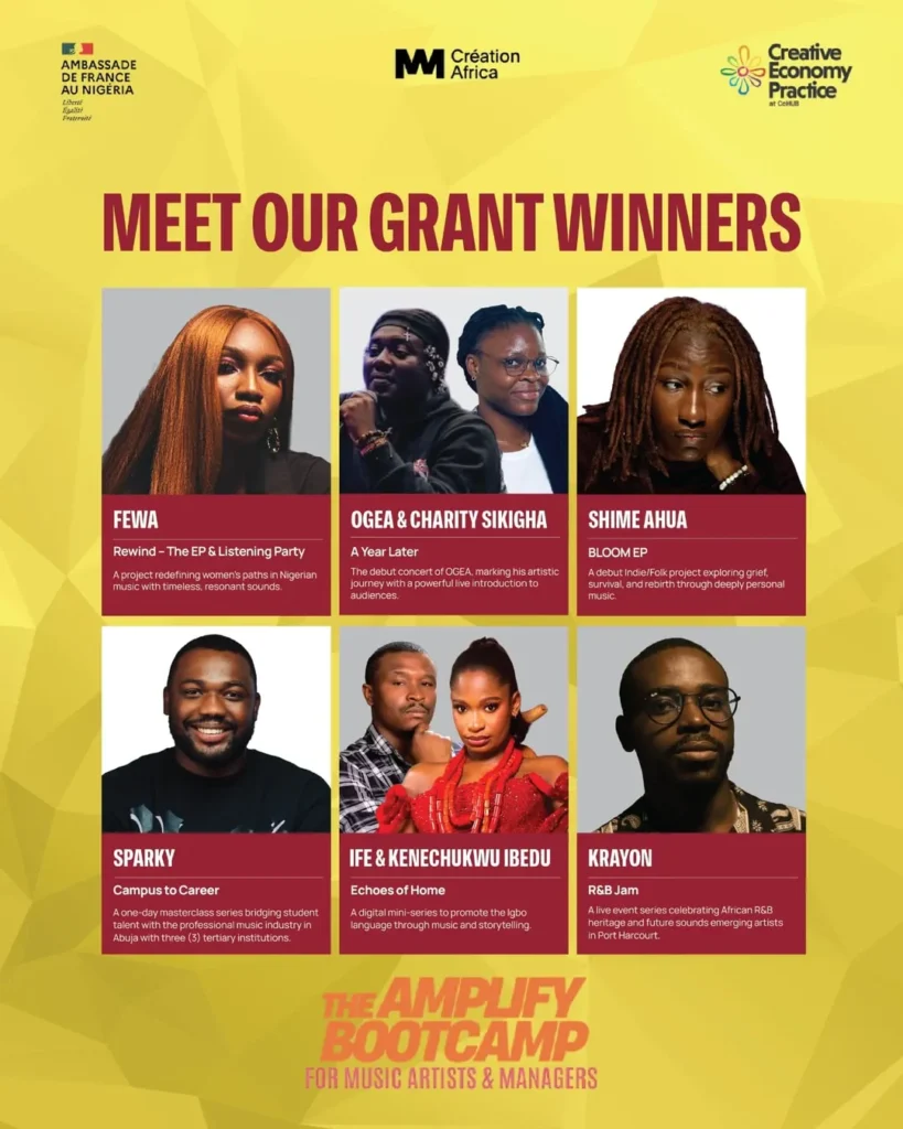 The Amplify Bootcamp – a specialized five-day music industry bootcamp designed to empower emerging music artists and their managers – was organized by the French Embassy in Nigeria under the CrĂ©ation Africa Fund.