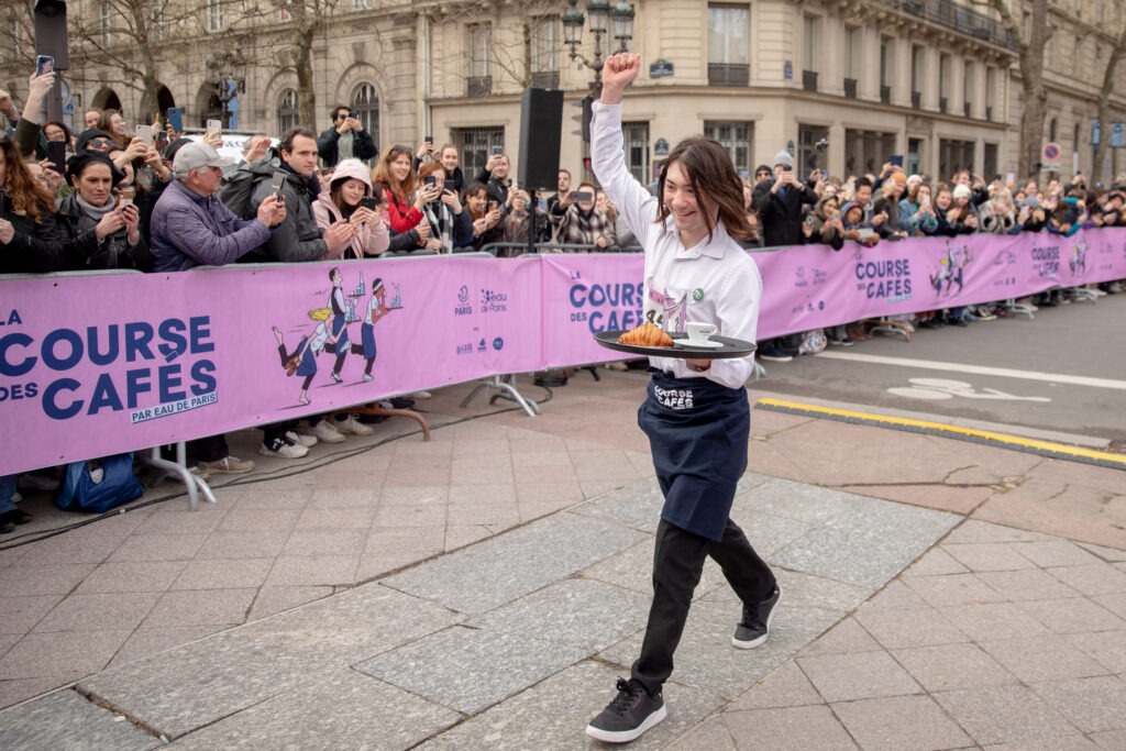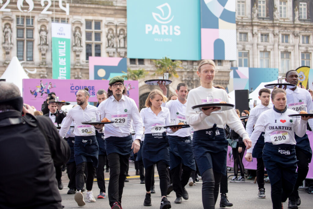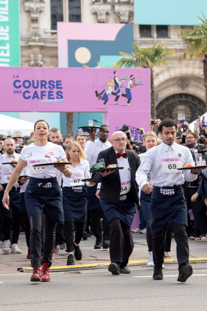 The Course de Cafés – jointly organised by the City of Paris, Eau de Paris, the Union des métiers et des industries de l’hôtellerie (UMIH) Paris Île-de-France and the Groupement des hôtelleries et restaurations de France (GHR) Paris Île-de-France – saw more than 200 waiters and waitresses take to the starting line.