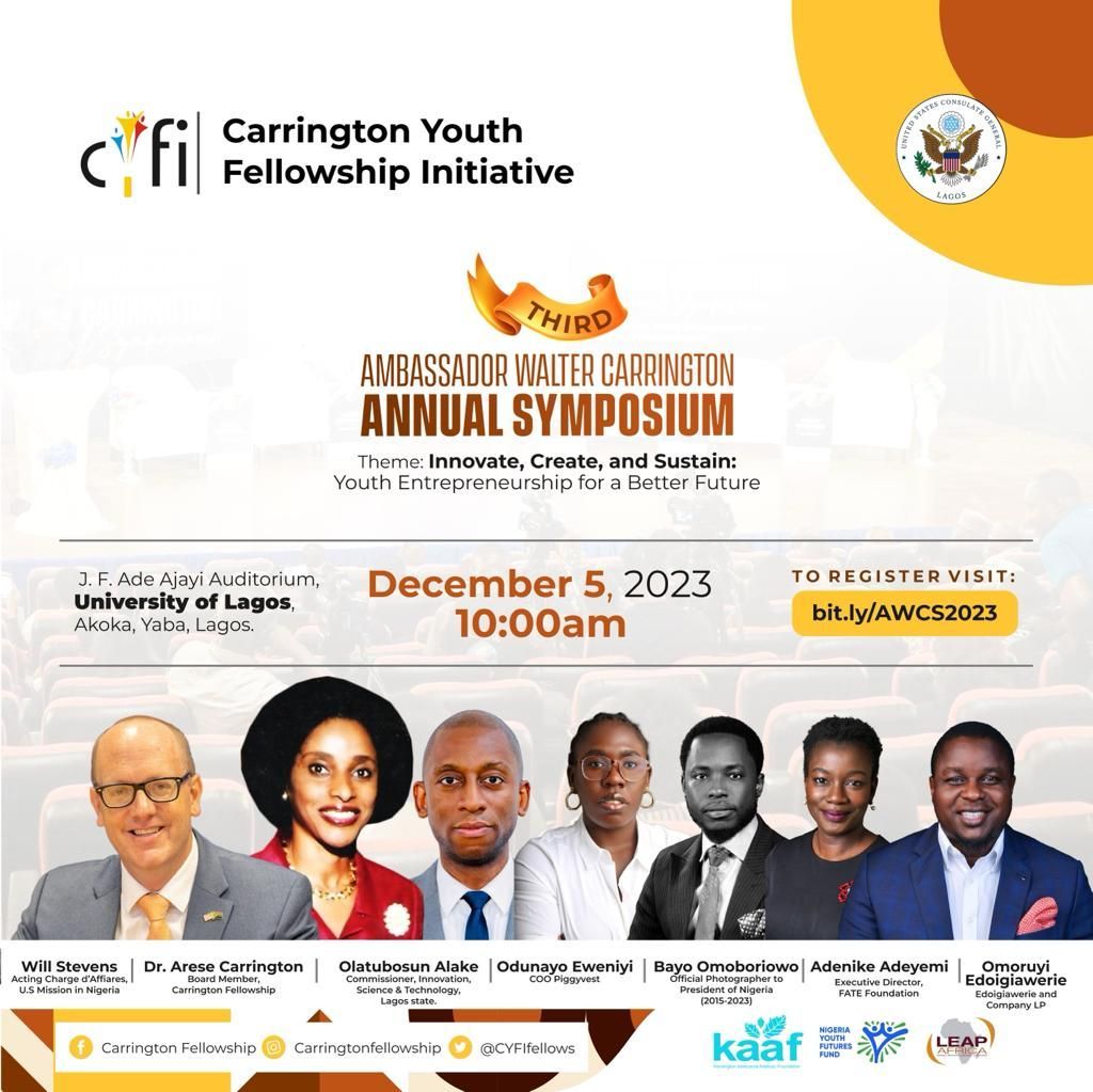 The 3rd Ambassador Walter Carrington Annual Symposium will be holding on December 05, 2023 at the J. F. Ade Ajayi Auditorium (University of Lagos, Akoka, Yaba-Lagos).